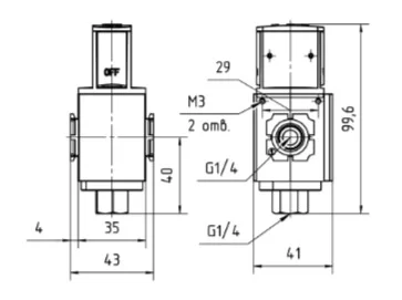 Монтажные размеры1/4 G, 43 x 41 x 99,6